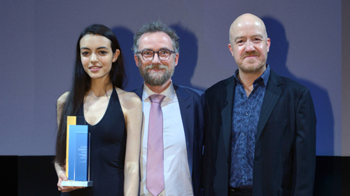 ▲Mr. Bohong Deng, director of the award-winning film, was not able to attend the award ceremony, a friend within the industry in Britain received the prize for him.Andy Parsons from British TV and the representative of the sponsor awarded for Dans Digital