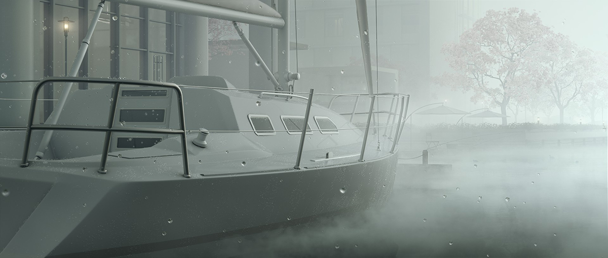 數(shù)百層三維模擬的晨霧,漸隱于其中的場景,