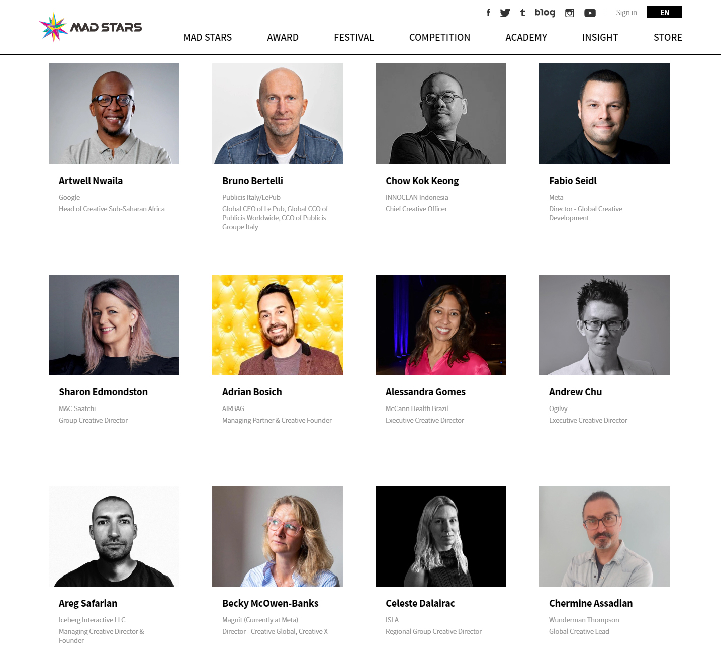 今年的MAD STARS評審陣容也一一公開,來自72個國家的315名評委組成初賽評委團(tuán),來自32個國家的45名評委組成角色評委團(tuán)。他們均是來自不同領(lǐng)域、不同背景的知名專業(yè)人士,以確保評審過程的公正性和專業(yè)性。
