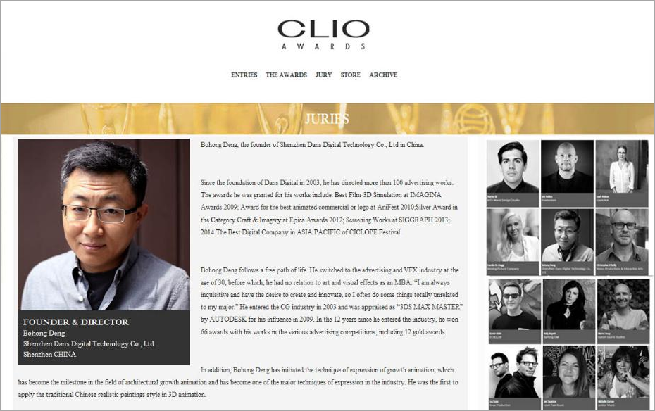 2015年、2016年、2017年,鄧博弘先生連續(xù)三次受到CLIO克里奧國際廣告獎的邀請赴紐約參與評審工作??死飱W主席Nicole Purcell曾告訴他,作為一個延續(xù)了58年的世界頂級影視廣告賽事,如果沒有中國人、中國元素的參與,則不能夠稱之為國際化。